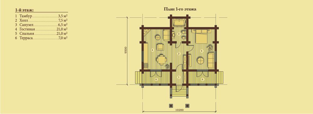 Общая площадь 73,5 кв.м.