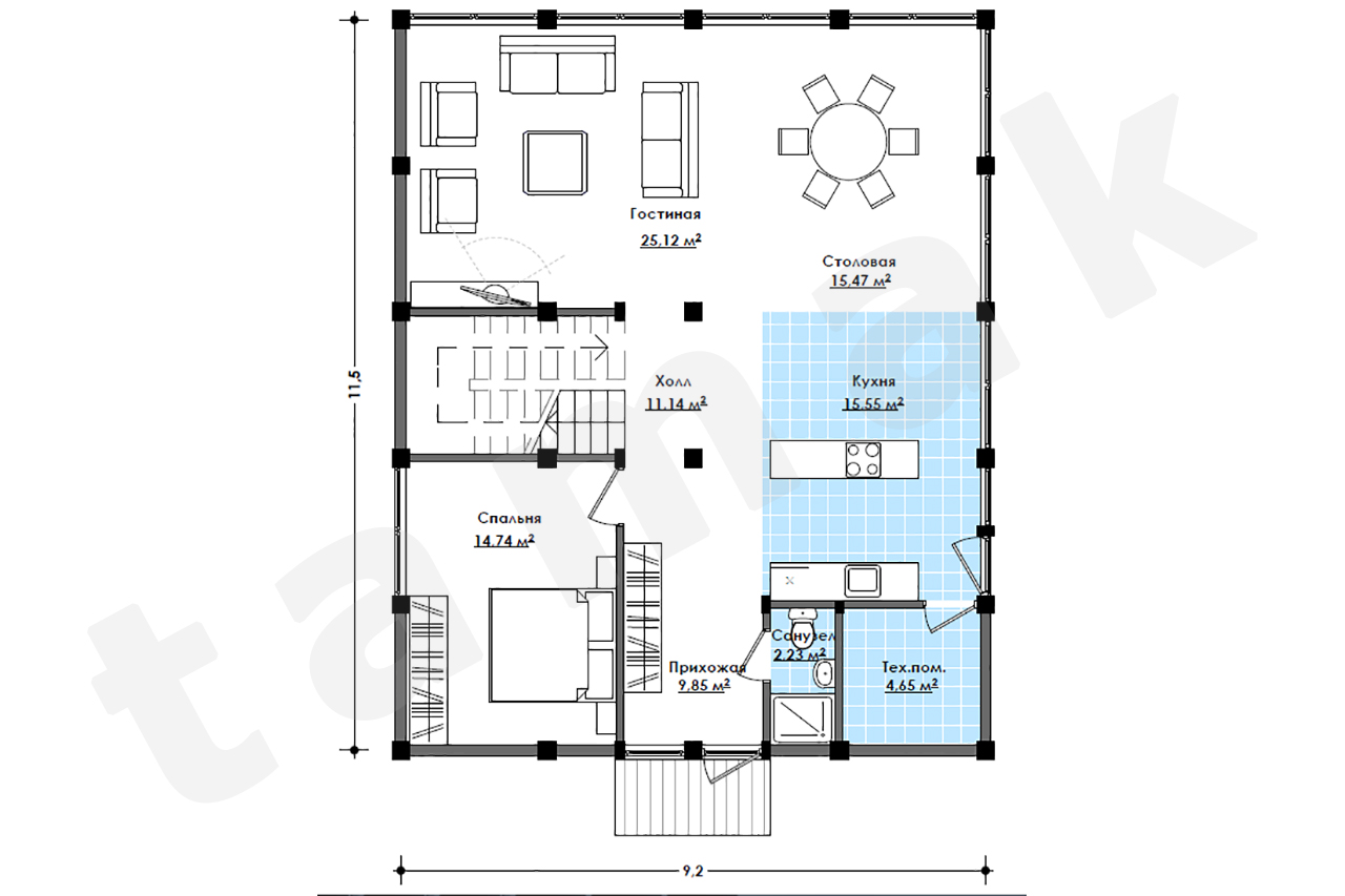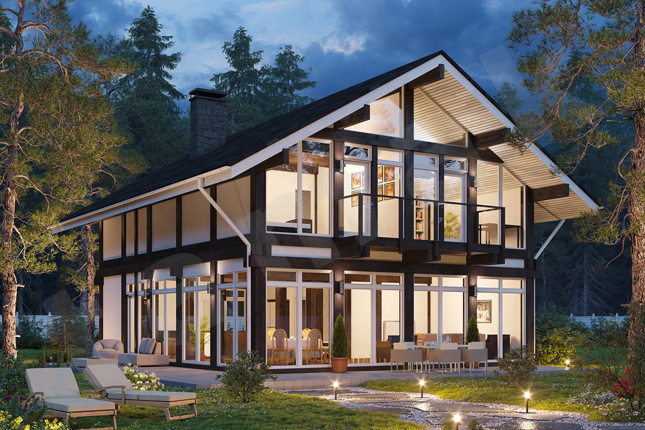 силовой каркас - деревянные клееные балки, ель, визуального качества, с запиловкой на станке Хундегер