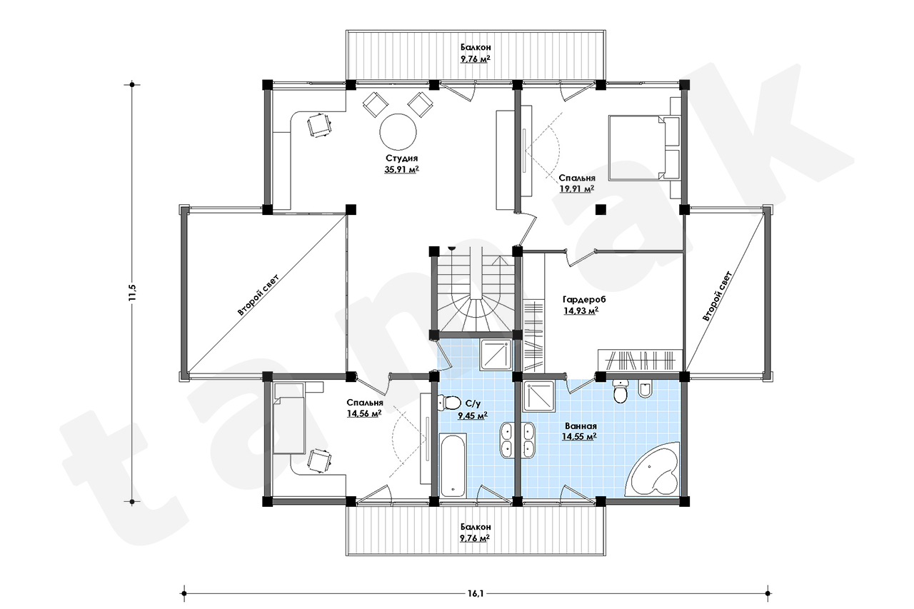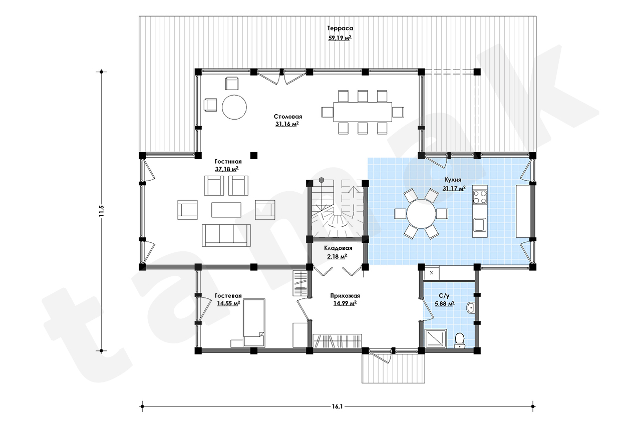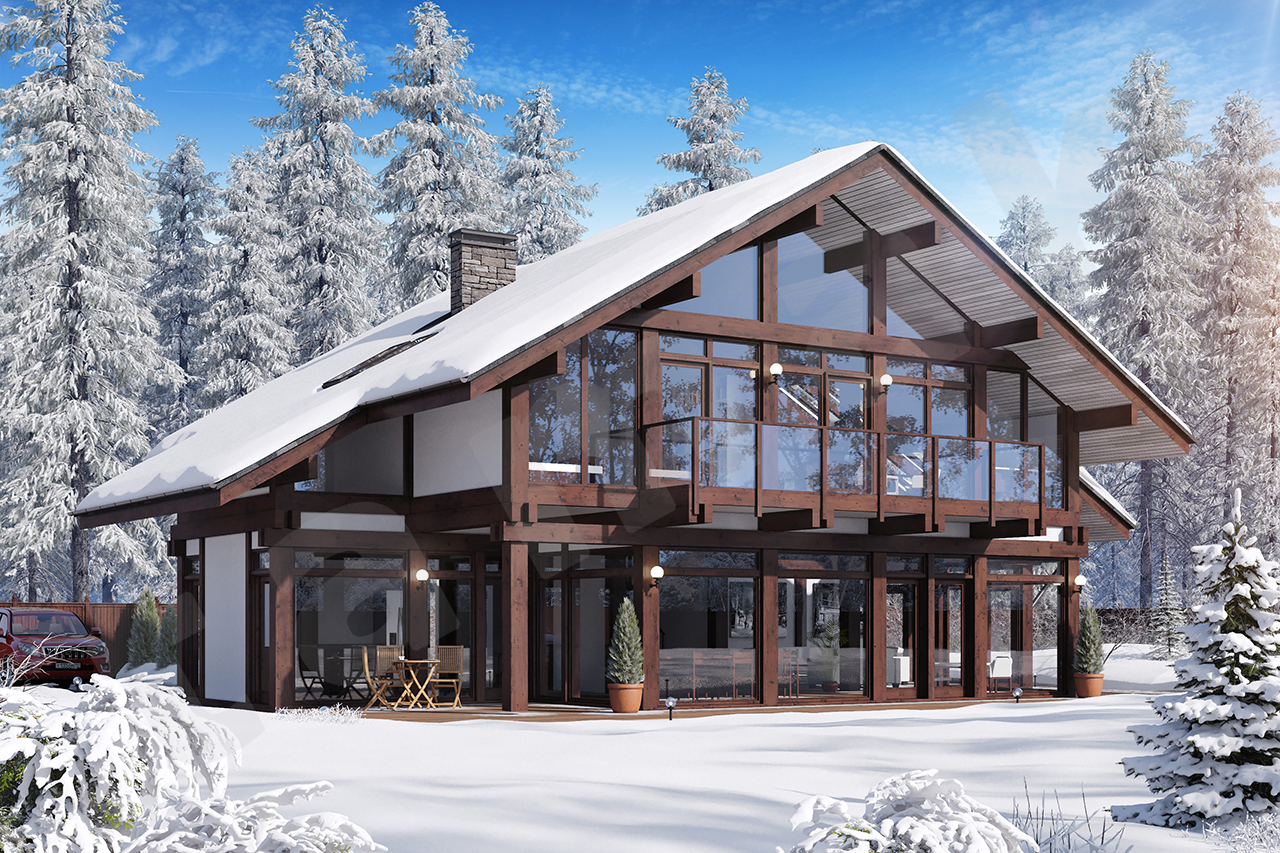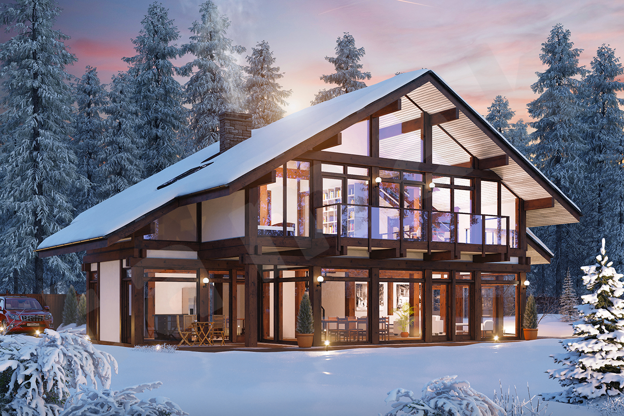 силовой каркас - деревянные клееные балки, ель, визуального качества, с запиловкой на станке Хундегер